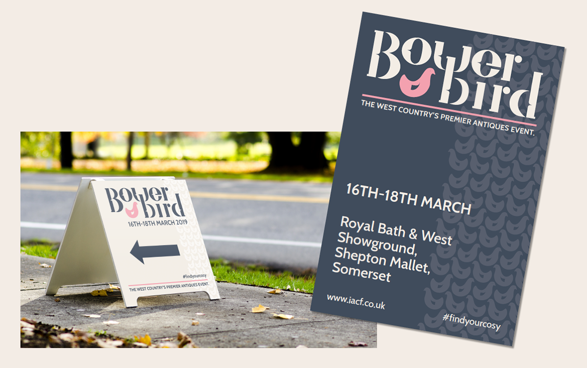 Bowerbird is a company who run antiques and collectables fairs throughout the UK. Using the name Bowerbird I designed and created a brand identity. The colours I kept quite muted so not to draw attention away from the products on offer.